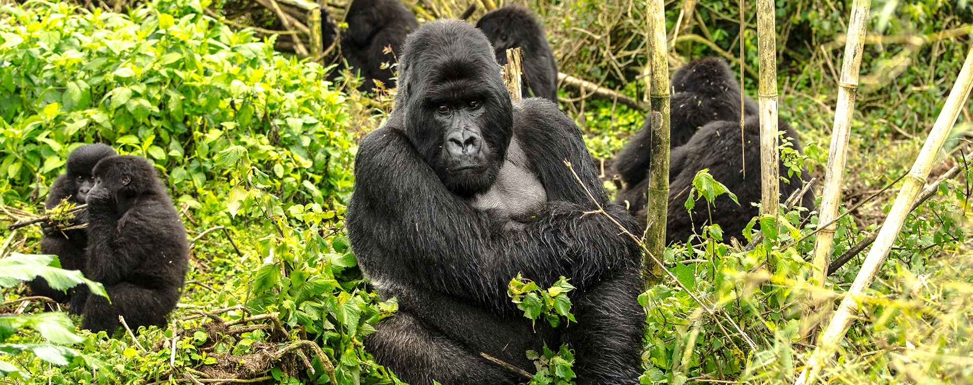 Trekking pelas trilhas do Parque Nacional dos Vulcões em busca dos raros gorilas-das-montanhas — uma das vivências mais emocionantes do continente africano.